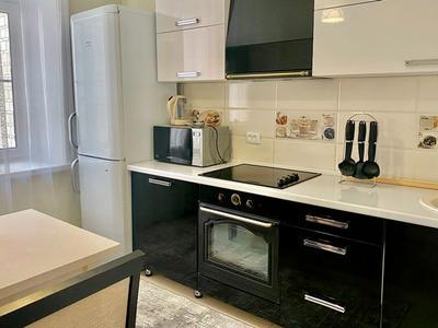 Выполнен евроремонт. Полностью меблирована, укомплектована бытовой техникой. Есть паркинг.