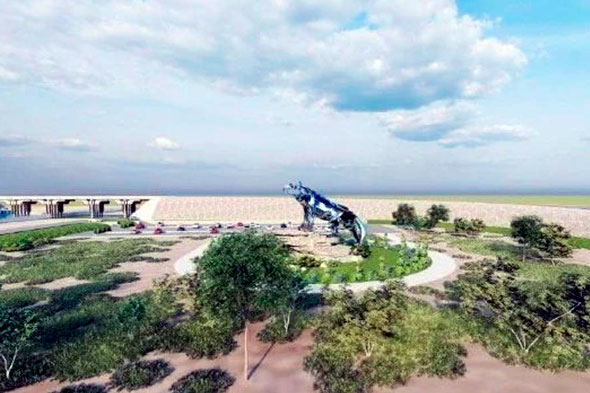 В первую очередь будет изменена входная группа в город. На въезде установят композицию «ҚОНАЕВ» и модернизируют въездную арку. Также благоустроят и озеленят территорию внутри разворотной петли и установят здесь фигуру снежного барса — символ области.