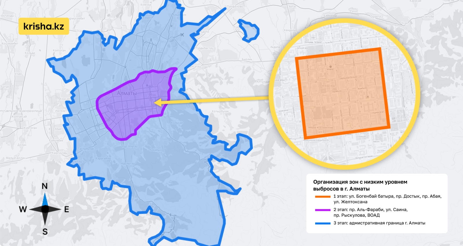 В Алматы начнут поэтапно вводить зоны с низким уровнем выбросов (LEZ) — сначала в центре города, затем в других районах.