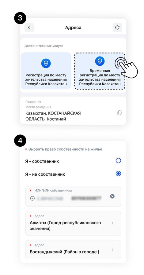 Через eGov Mobile: Госуслуги → Недвижимость и ЖКХ → Регистрация по месту жительства. Заполняете данные, указываете причину, подписываете любым доступным способом.