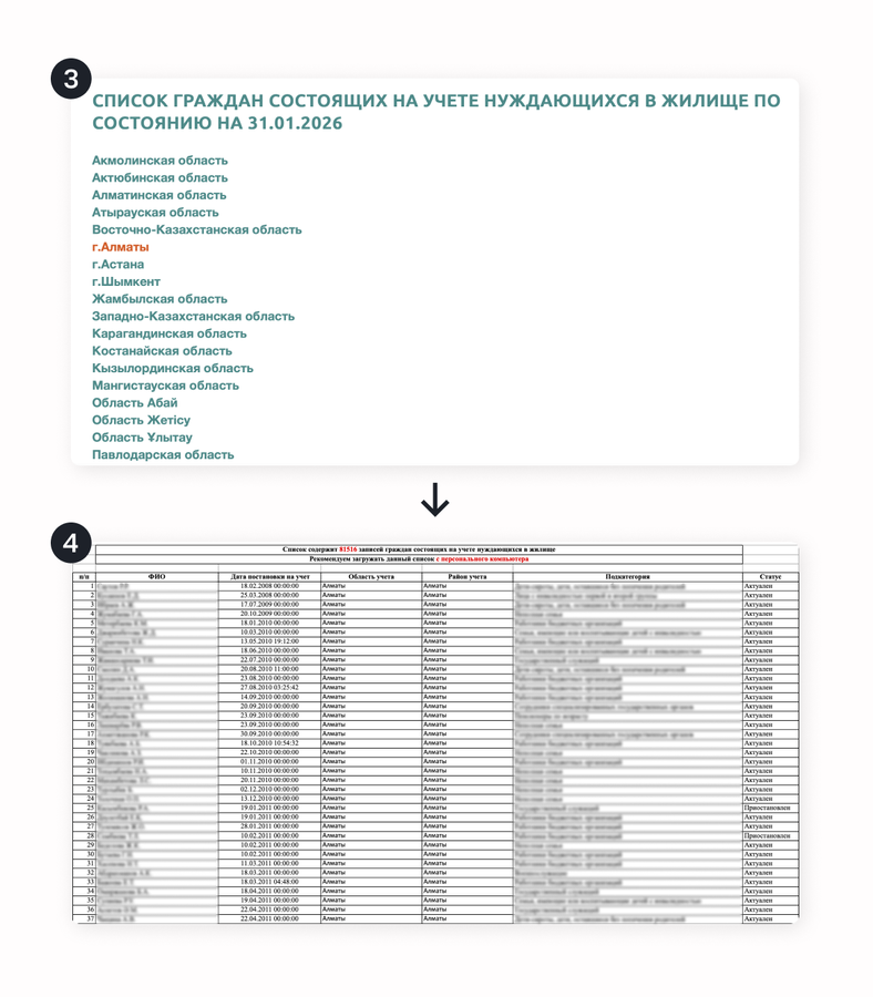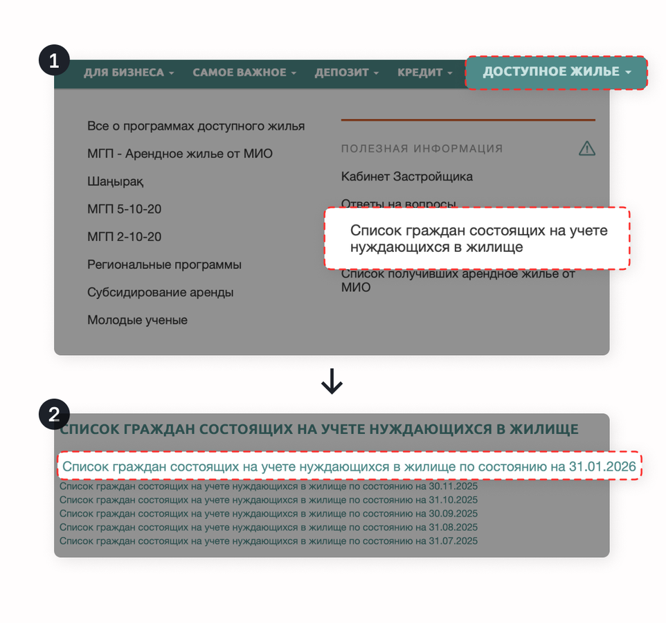 Чтобы получить СМС о распределении жилья — аренда, ипотека или субсидия, — нужно проходить инвентаризацию. Сообщения отправляет Отбасы банк, который ведёт списки очередников.