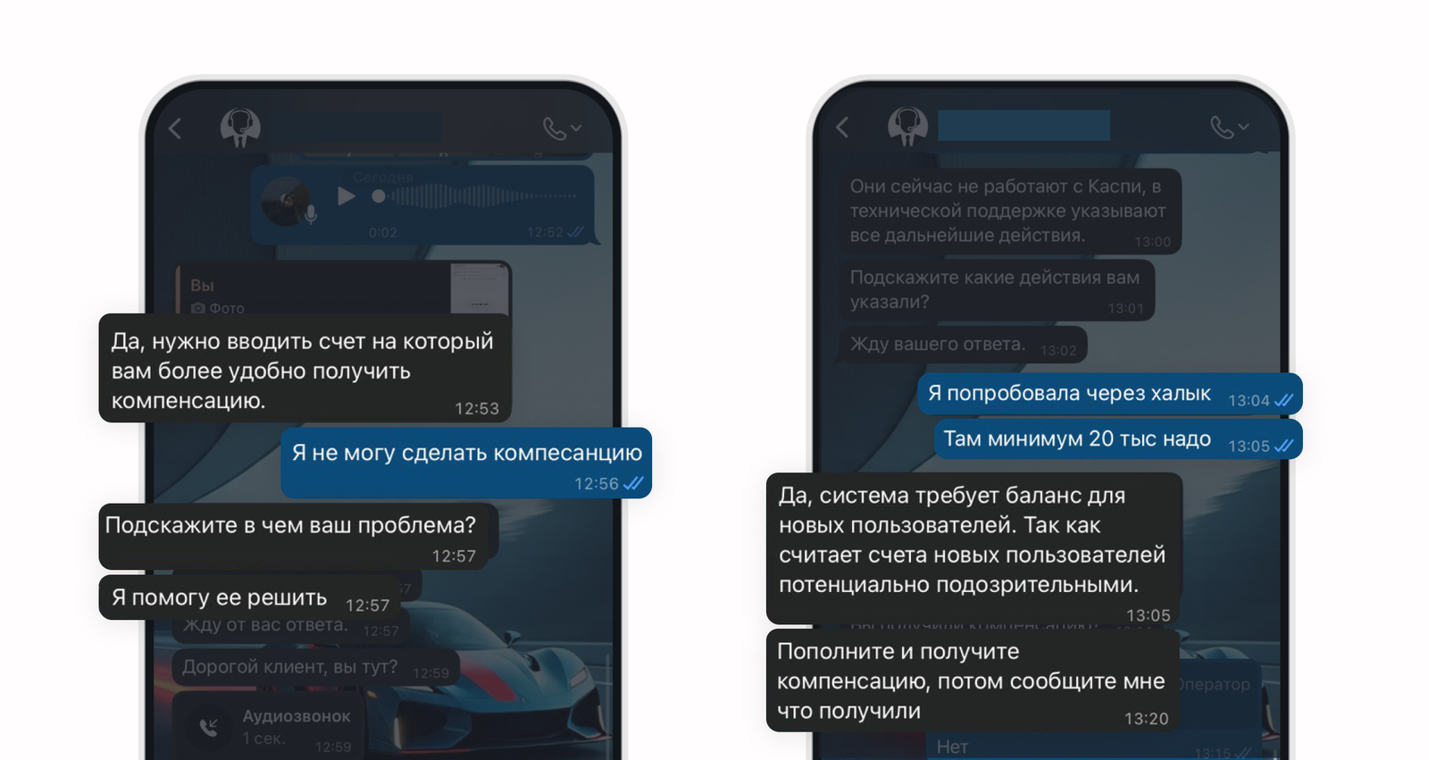 Якобы они увидели переписку с подозрительным пользователем и волнуются, что клиенту могли нанести ущерб. Чтобы возместить его, хотят выплатить денежную компенсацию.