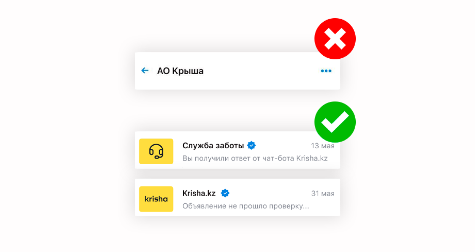 Krisha.kz не использует личные номера и случайные аккаунты. Сотрудники сайта пишут только с официальных аккаунтов или отвечают под постами на официальных каналах.