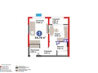 2-бөлмелі пәтер · 54.48 м², Бауыржана Момышулы 11/14а