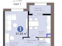 1-бөлмелі пәтер · 43.89 м², Е 909 29