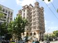 Дом поражает своим экстерьером. Больше всего он напоминает замок. Этому способствуют выступающие эркеры, круглые башни, заканчивающиеся куполами с остроконечными шпилями, и роскошная отделка травертином.