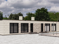 - Фасад дома будет облицован экологически чистым материалом травертин с хорошей теплоизоляцией.